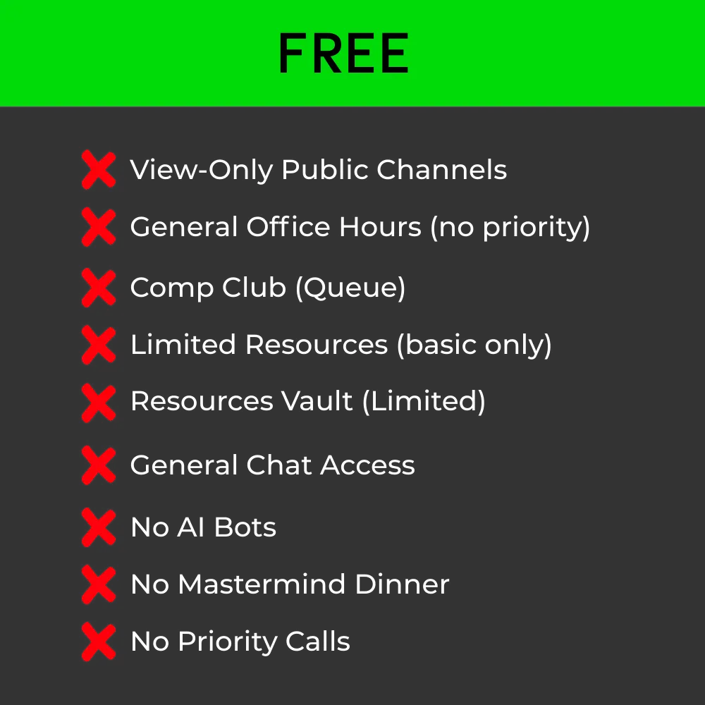 Plug into weekly calls, live support, and a community that